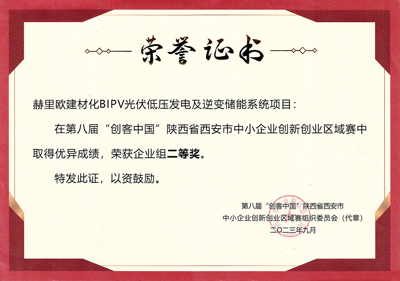 秦创原西安国际创新创业大赛二等奖