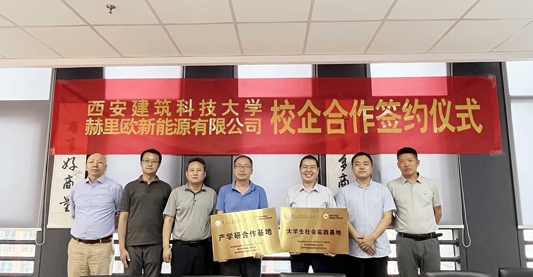 2022年7月13日,西安建筑科技大学与赫里欧新能源有限公司在赫里欧总部签订了大学生社会实践基地合作协议并授牌,西安建筑科技大学材料科学与工程学院党委书记段锋、副书记崔捷、功能材料研究所所长尹洪峰、副所长云斯宁及功能材料研究所张强博士等相关代表;赫里欧新能源有限公司总经理崔永祥、总经理助理马水莹等代表参与了本次会议。