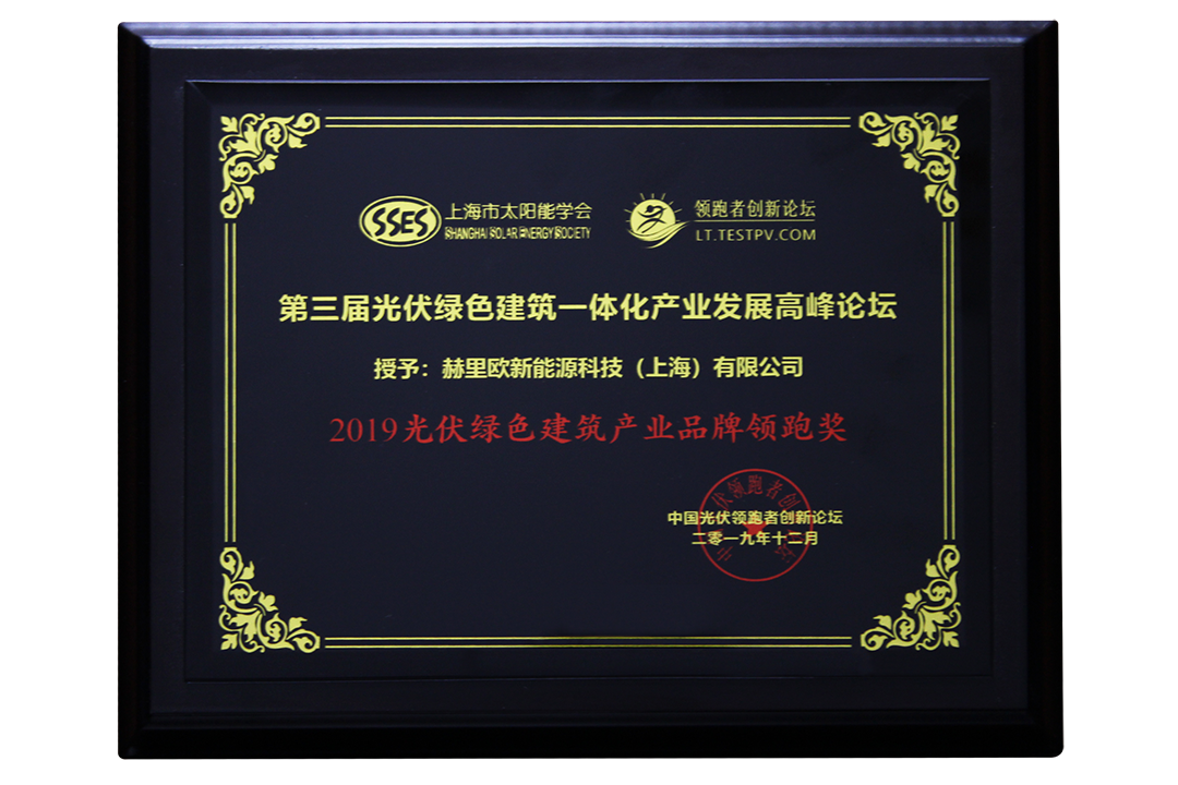 1.2019年荣获绿色建筑产品品牌领跑奖(上海市太阳能协会)
