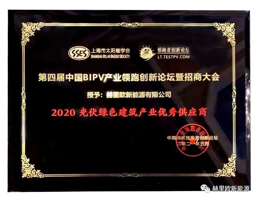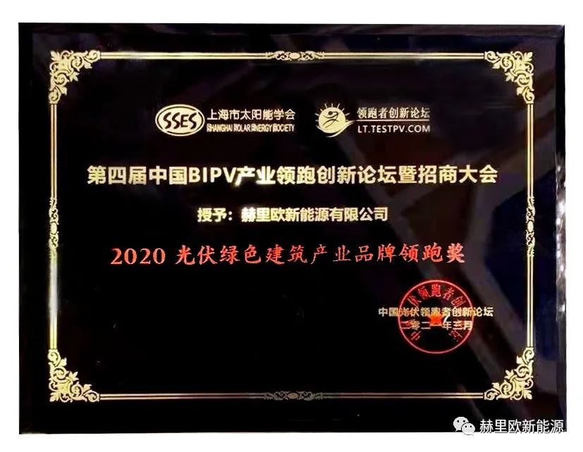 4.2020年荣获光伏绿色建筑产品领跑者奖(太阳能领跑者联盟)