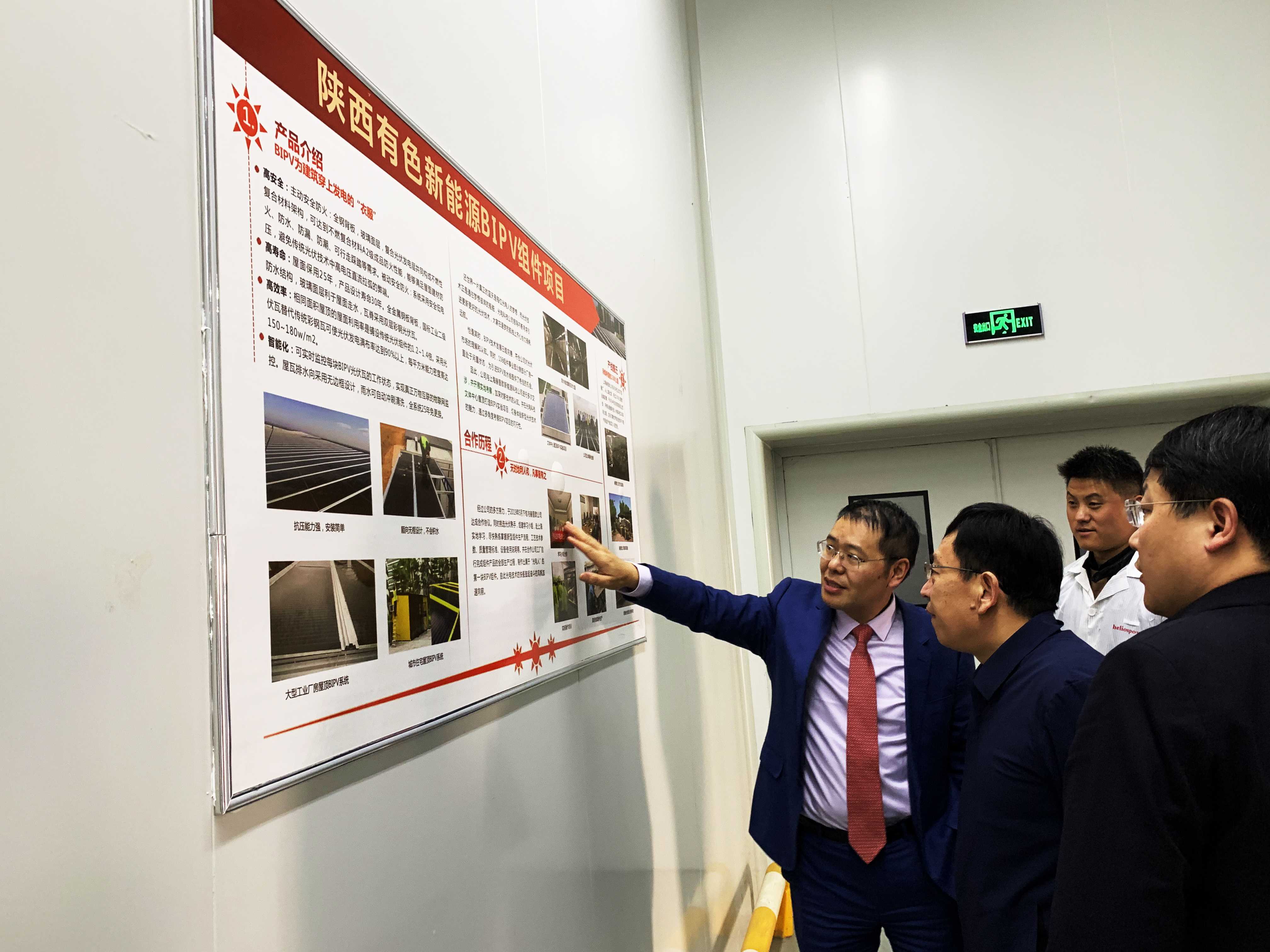 考察当天,桑逢智部长与赫里欧新能源董事长崔永祥等人进行座谈,双方就赫里欧BIPV光伏产品及相关国家政策发展展开讨论交流,讲解了赫里欧BIPV新型智能光伏产品具有的高安全、高寿命、高效率、低成本、易安装以及环保智能化的优势。并于交流会后前往陕西有色光电科技公司,实地考察BIPV 100万平米生产线及具体应用情况。