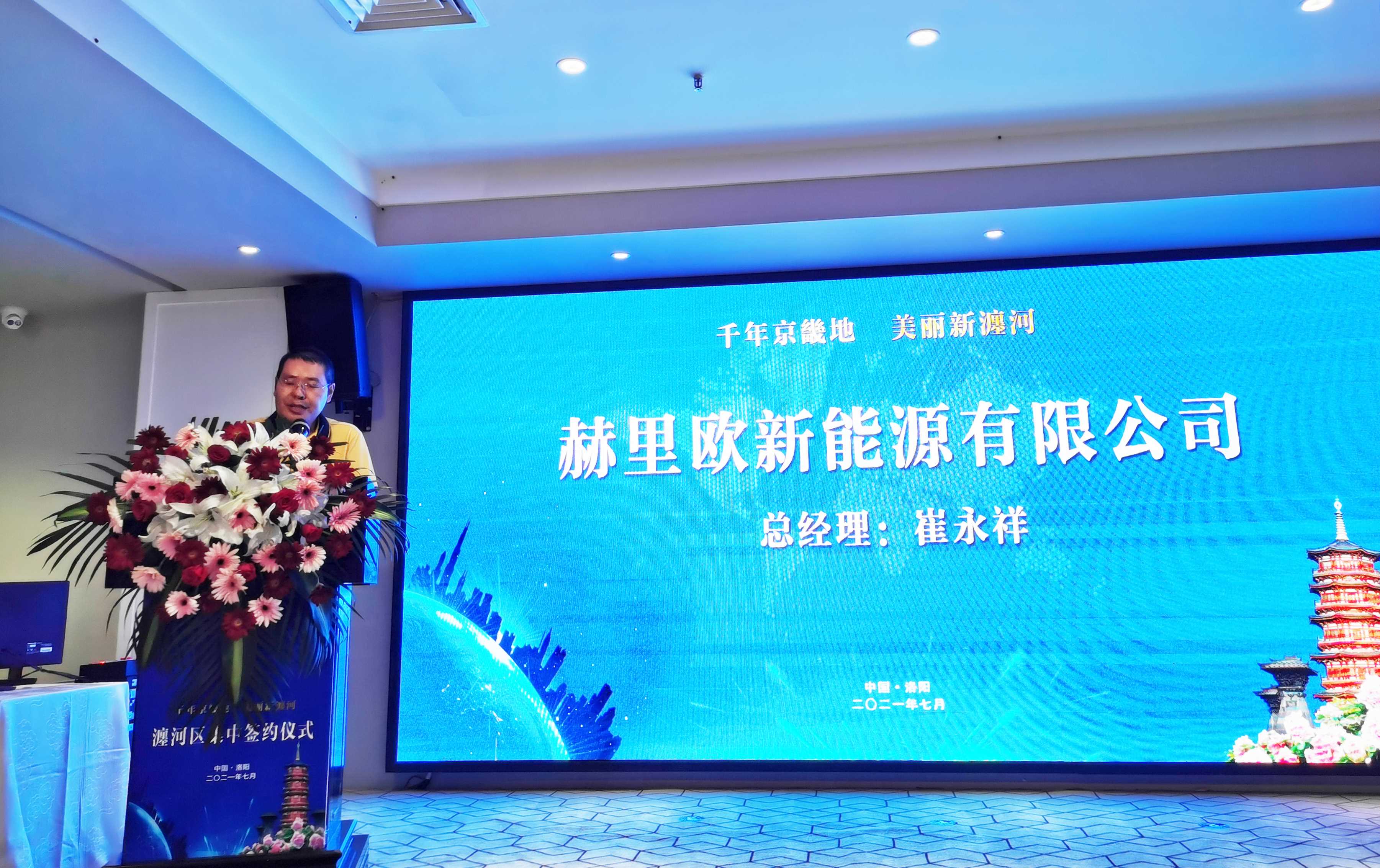 2021年7月15日下午,洛阳市瀍河区举行招商引资项目集中签约仪式。瀍河区区委书记陈功出席并讲话、区委副书记周晋育致欢迎辞,相关部门领导及本次签约企业相关代表等参加签约仪式。赫里欧新能源有限公司执行总裁兼CEO崔永祥代表公司出席,与瀍河区签署合作意向协议,并作交流发言。