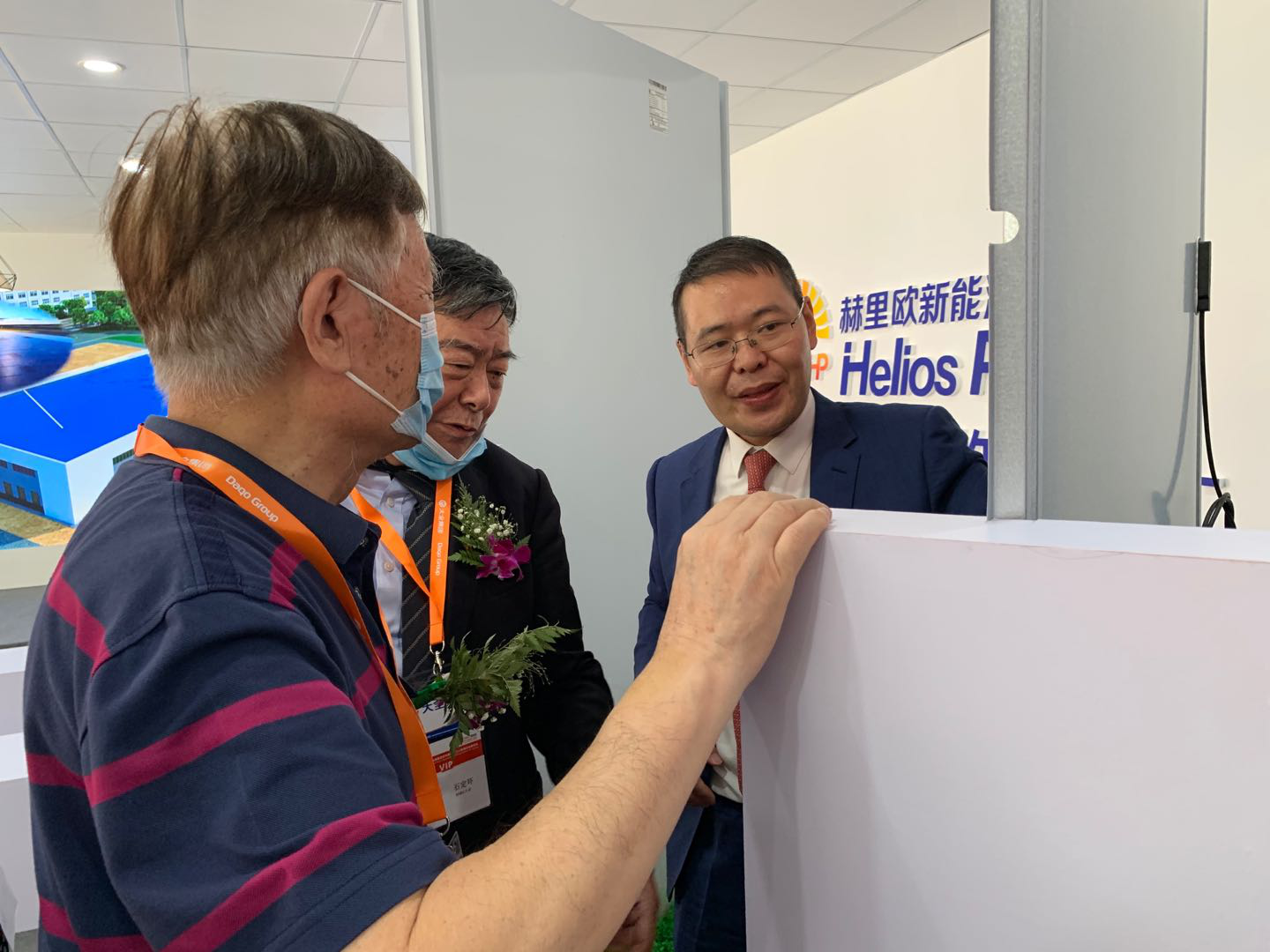 2020上海SNEC展会开幕式嘉宾石定寰、周孝信、李凤玲于赫里欧展厅合影