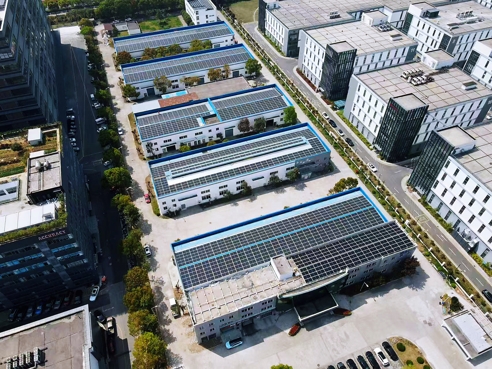 3. 江苏·苏州:苏州佳龙环保公司屋顶BIPV项目为6座饱经风霜的老厂房带来新生。面对使用了二十余年大面积漏水的屋面,业主选用赫里欧金属背板的光伏瓦轻松实现焕彩换装屋面,发电容量达1313.34千瓦,25年年平均发电量130万度,年均利用小时数1060小时,不仅彻底解决了防水难题,更将建筑寿命再延长25年以上。