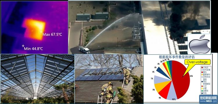 上述问题恶化后导致组件失效,甚至着火燃烧。这也就不难解释屋面光伏发电着火概率远远大于地面电站的原因。