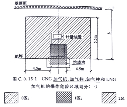 C.0.15 CNG加气机、加气柱、卸气柱和LNG加气机的爆炸危险区域的等级和范围划分,应符合下列规定: