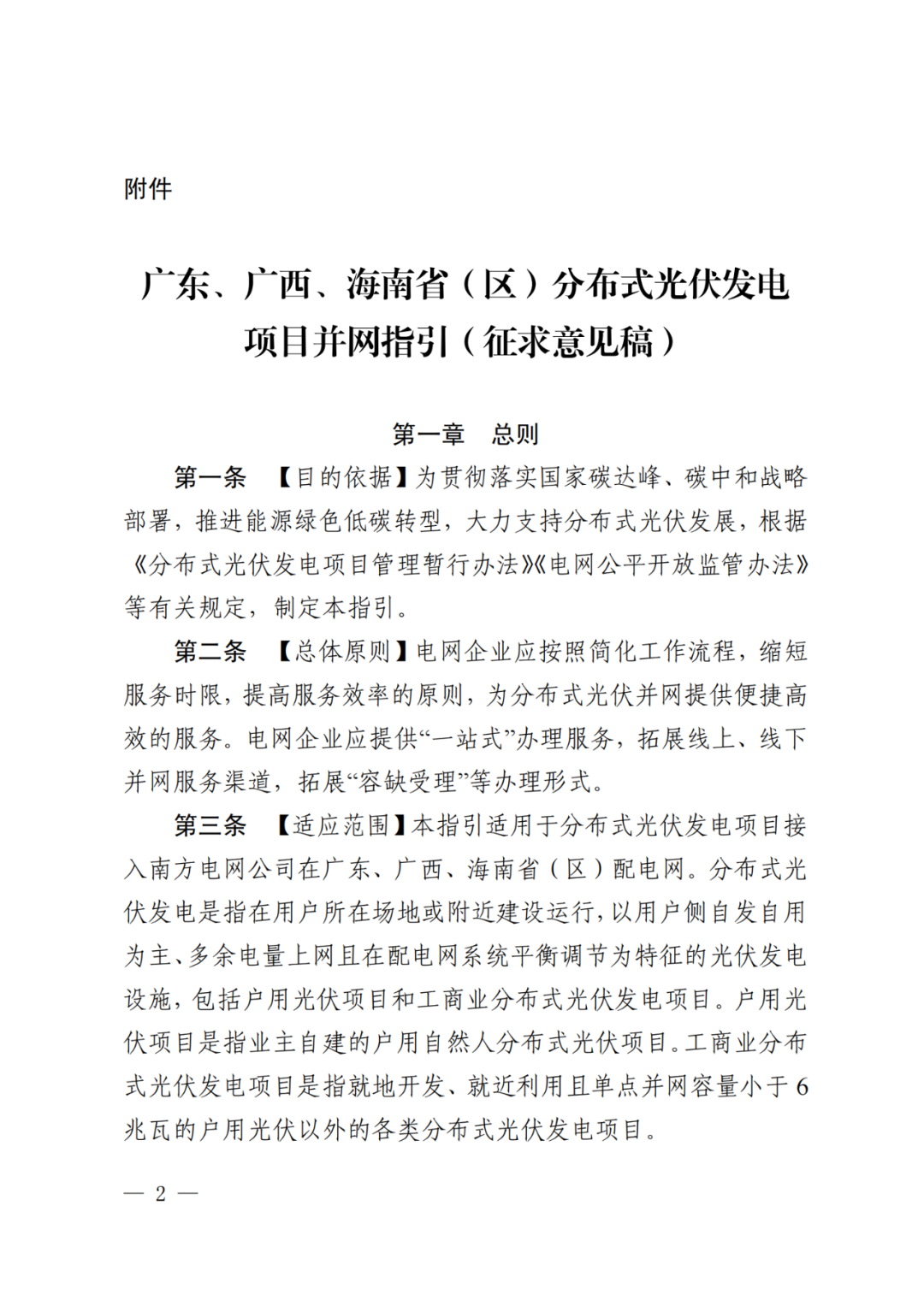 近日,国家能源局南方监管局印发了关于公开征求《广东、广西、海南省(区)分布式光伏发电项目并网指引(征求意见稿)》意见的通告。意见稿中对接入南方电网公司广东、广西、海南省(区)配电网的分布式光伏发电项目进行了并网指引。