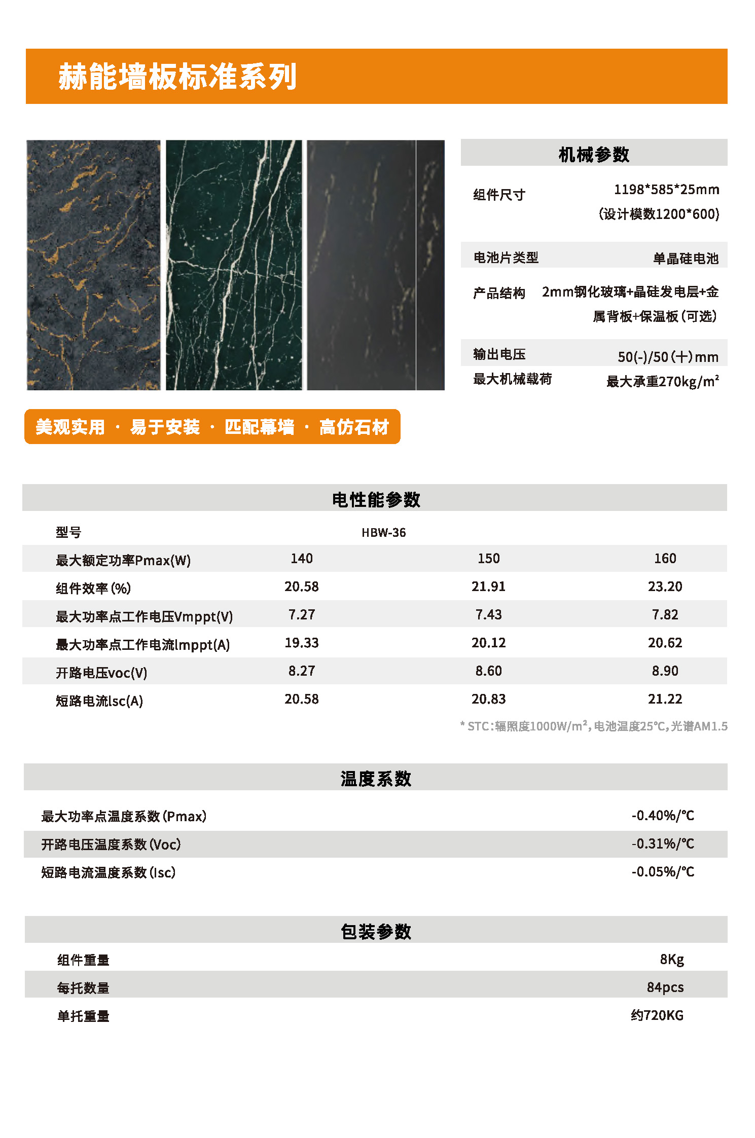 赫能墙仿石材光伏墙板在外观上完美复刻了天然石材的纹理与色泽,从细腻的砂岩质感,到粗犷大气的花岗岩纹理,每一款都栩栩如生,给人带来与天然石材无异的感受。这不仅满足了建筑师对于建筑外立面美学设计的严苛要求,更能为建筑增添一份自然、庄重的气质,使其与各种建筑风格相得益彰,从古典欧式到现代简约,皆能完美适配。