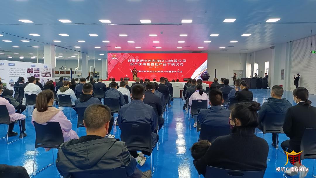 12月20日下午三点,赫里欧新材料科技(文山)有限公司投产庆典暨首批产品下线仪式在广南县产业示范园莲城片区举行。