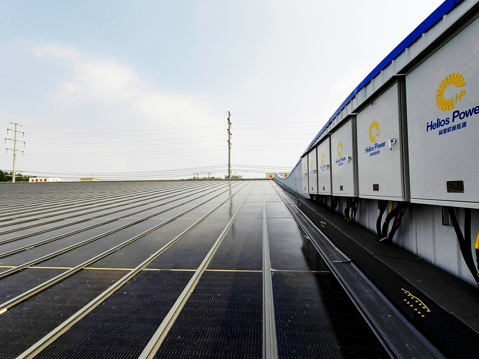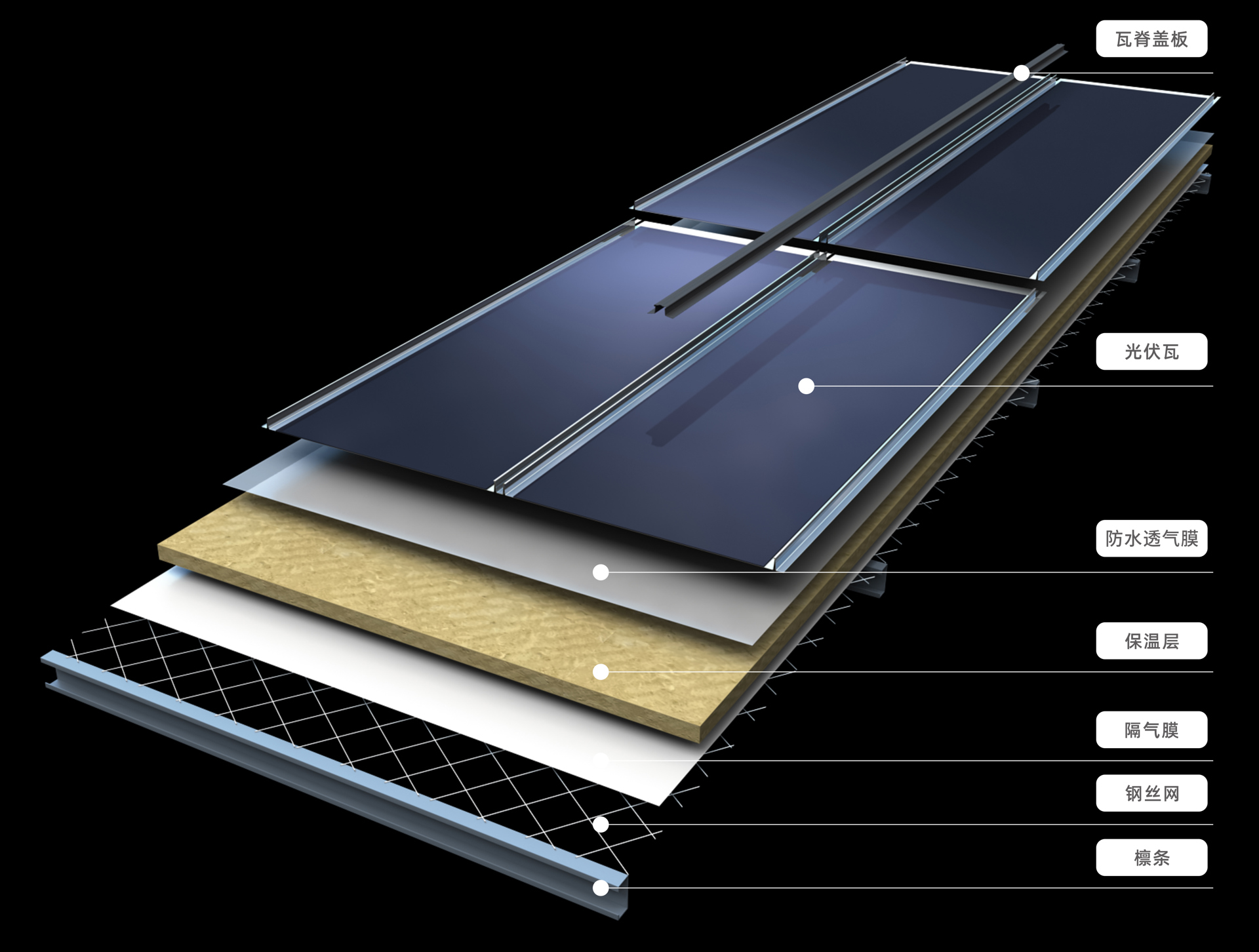 该项目采用赫里欧公司自主专利光伏建筑一体化技术,具备高安全性、A2级防火、IPX3级防水、耐候、承重等特性。此类光伏瓦可替换普通彩钢瓦和外墙面材直接作为屋面材料和墙面材料使用,使用25年无需更换。