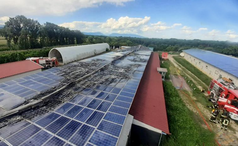 近日,【光伏资讯】了解到,位于意大利特雷维索省蛋鸡养殖场起火,火灾可能是光伏系统引发的,烧毁了1500多平方米的隔热罩,产生大量烟雾,导致棚内数万羽蛋鸡窒息。