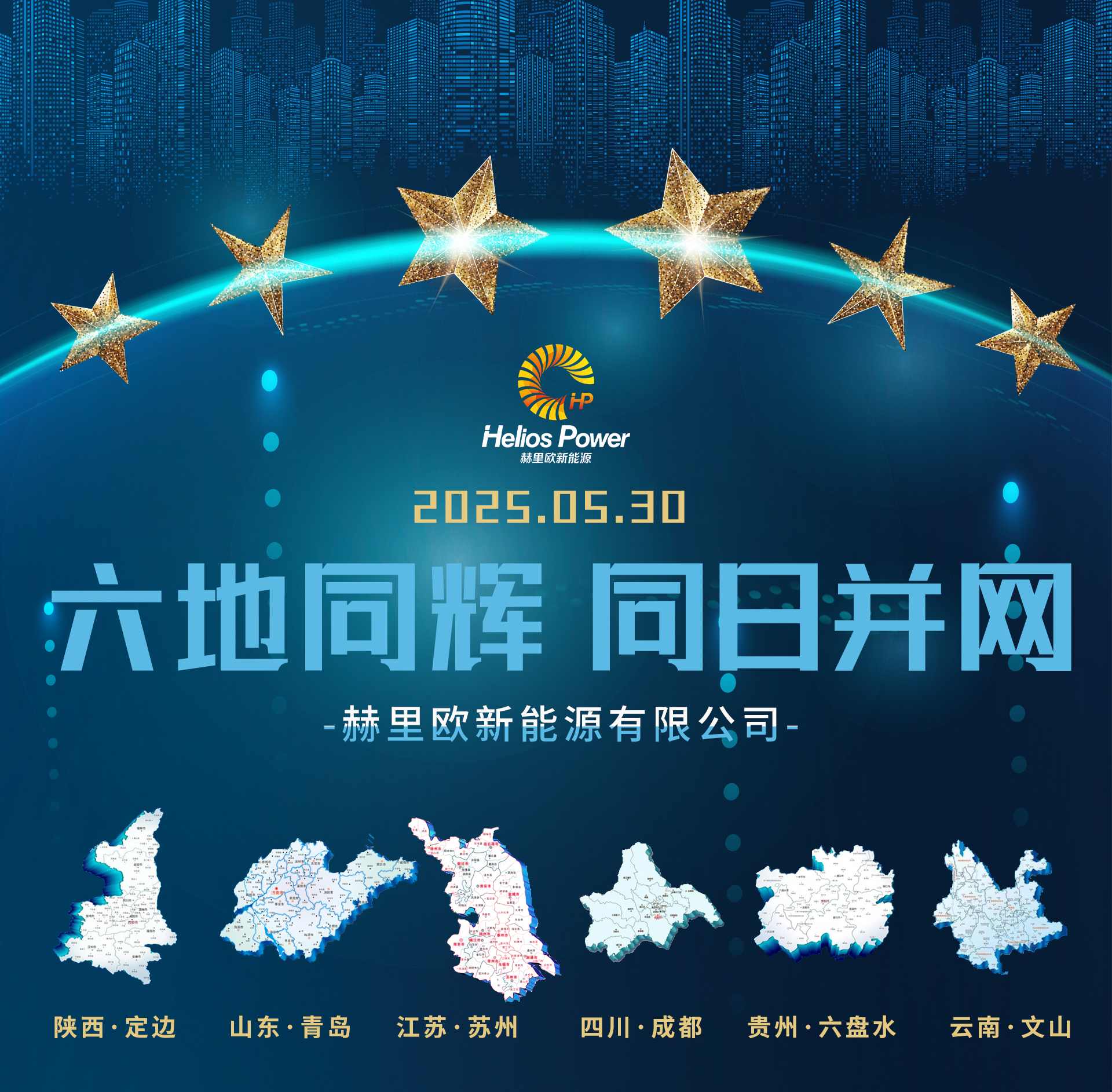 2025年5月30日,一个注定载入赫里欧新能源发展史册的日子!在祖国的大江南北,从西南腹地到东海之滨,从西北油田到江南水乡,再到天府之国,由赫里欧新能源倾力打造的六大BIPV(光伏建筑一体化)项目,于同一日成功实现并网发电!