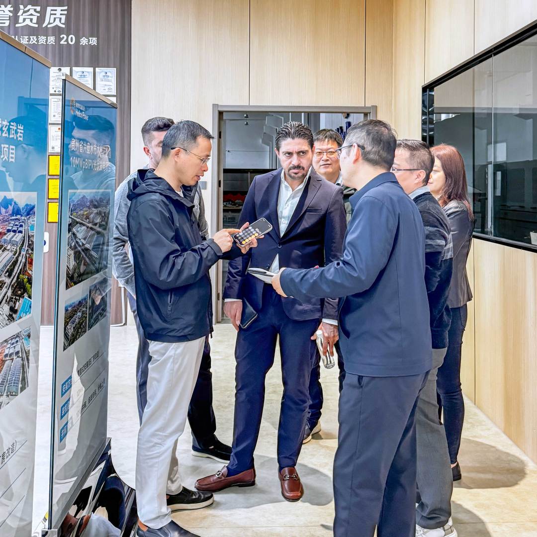 秋高气爽,宾至如归。10月9日,赫里欧新能源有限公司迎来了一批远道而来的合作伙伴——来自巴基斯坦的客户一行7人到访我司。此次到访旨在实地参观公司展厅,深入了解赫里欧在光伏建筑一体化(BRPV)领域的技术研发成果与项目应用实践,并围绕共同关心的市场机遇展开深度合作洽谈。
