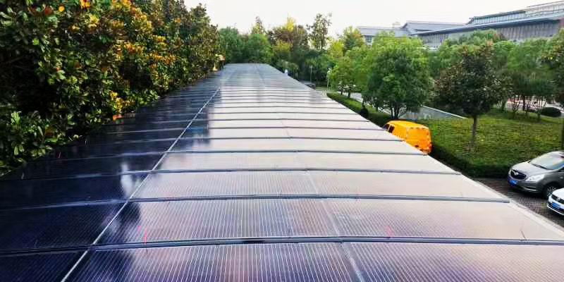 光伏车棚,不仅发的电能够供给新能源车使用外,多余的电量还可以卖给国家,不仅有非常不错的收益,还能减缓城市的用电压力。