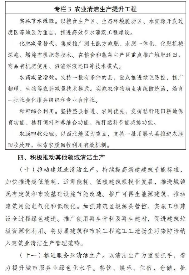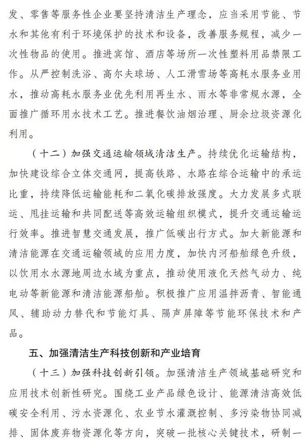 1、推动建筑业清洁生产,推广可再生能源建筑,推动建筑用能电气化和低碳化。加强交通运输领域清洁生产,加大新能源和清洁能源在交通运输领域的应用力度,加快内河船舶绿色升级,以饮用水水源地周边水域为重点,推动使用液化天然气动力、纯电动等新能源和清洁能源船舶。