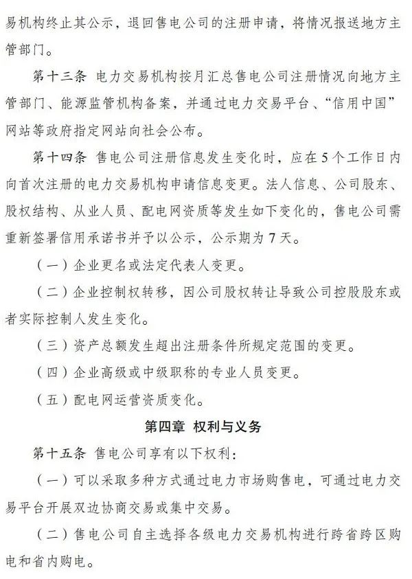 《办法》指出,售电公司可以采取多种方式通过电力市场购售电,可通过电力交易平台开展双边协商交易或集中交易,按照可再生能源电力消纳责任权重有关规定,承担与年售电量相对应的可再生能源电力消纳量。
