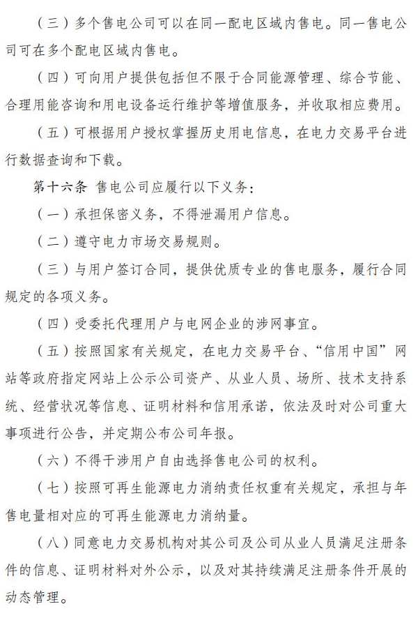 国家发改委、国家能源局近日印发《售电公司管理办法》,明确多个售电公司可以在同一配电区域内售电,同一售电公司可在多个配电区域内售电。